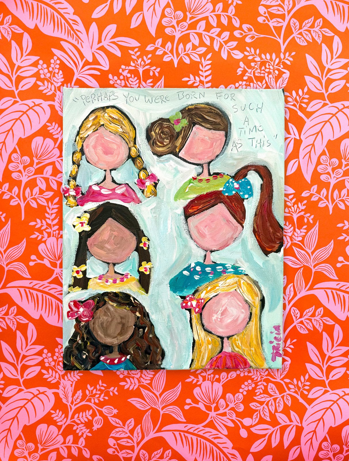 Mixed media (acrylic paint and paper) painting on gallery wrapped canvas.