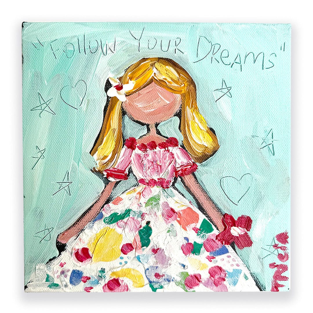 Mixed media (acrylic paint and paper) painting on gallery wrapped canvas.