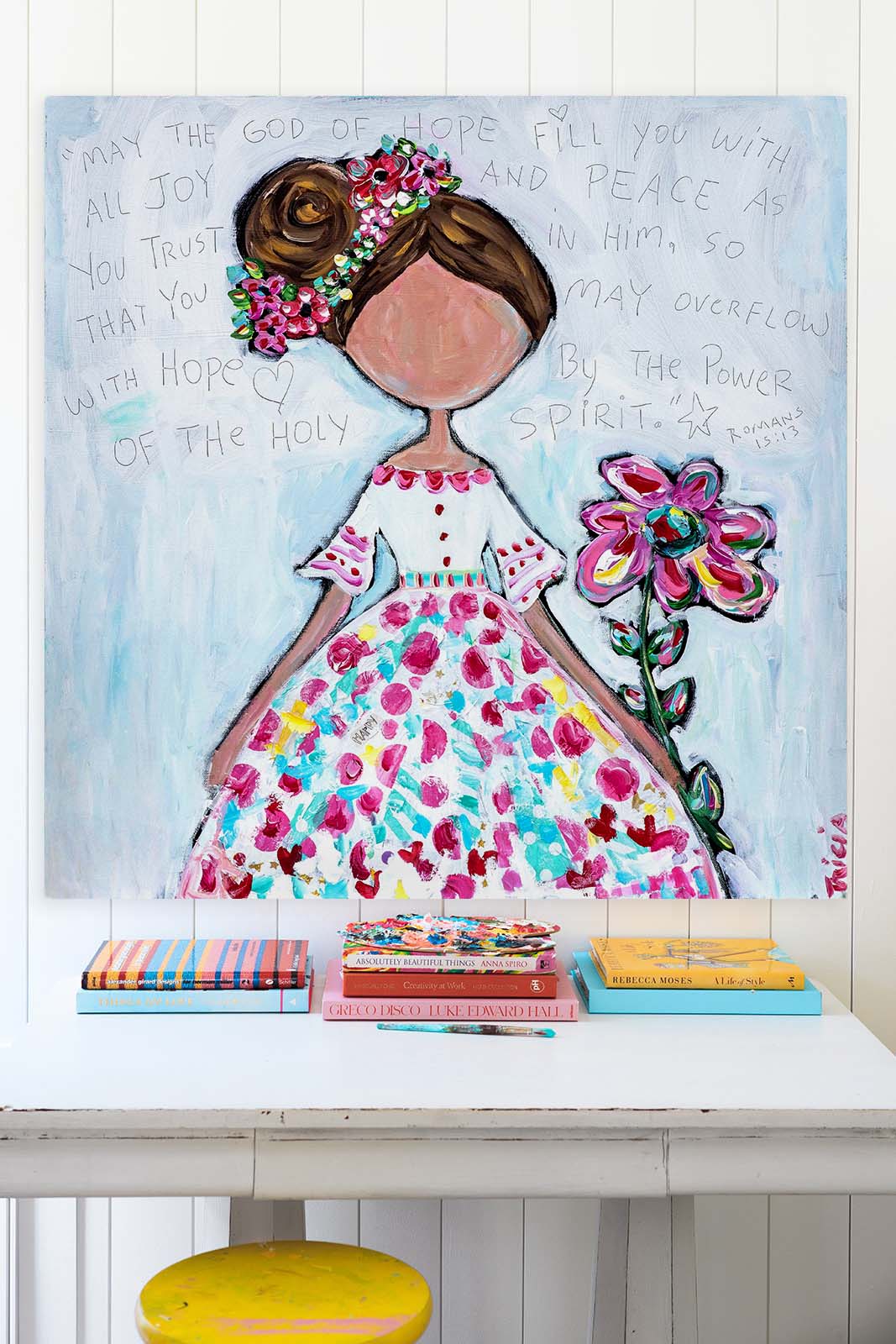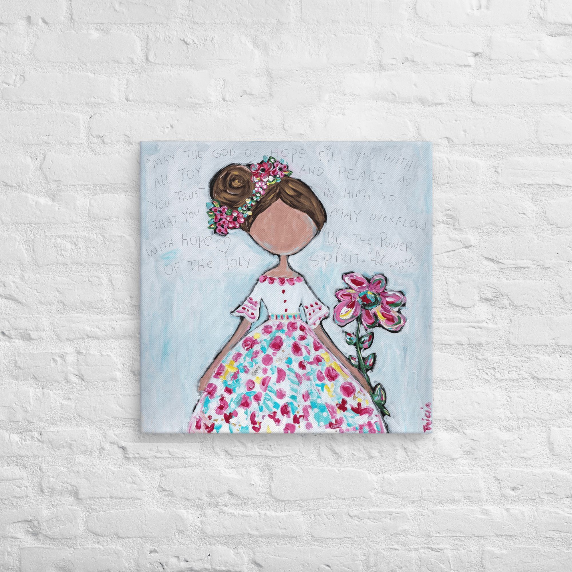 This beautiful giclee, or canvas print, is an exact replica of the original painting by Tricia Robinson. It's absolutely wonderful how it shows the richness of the colors, the texture and depth of the original painting.