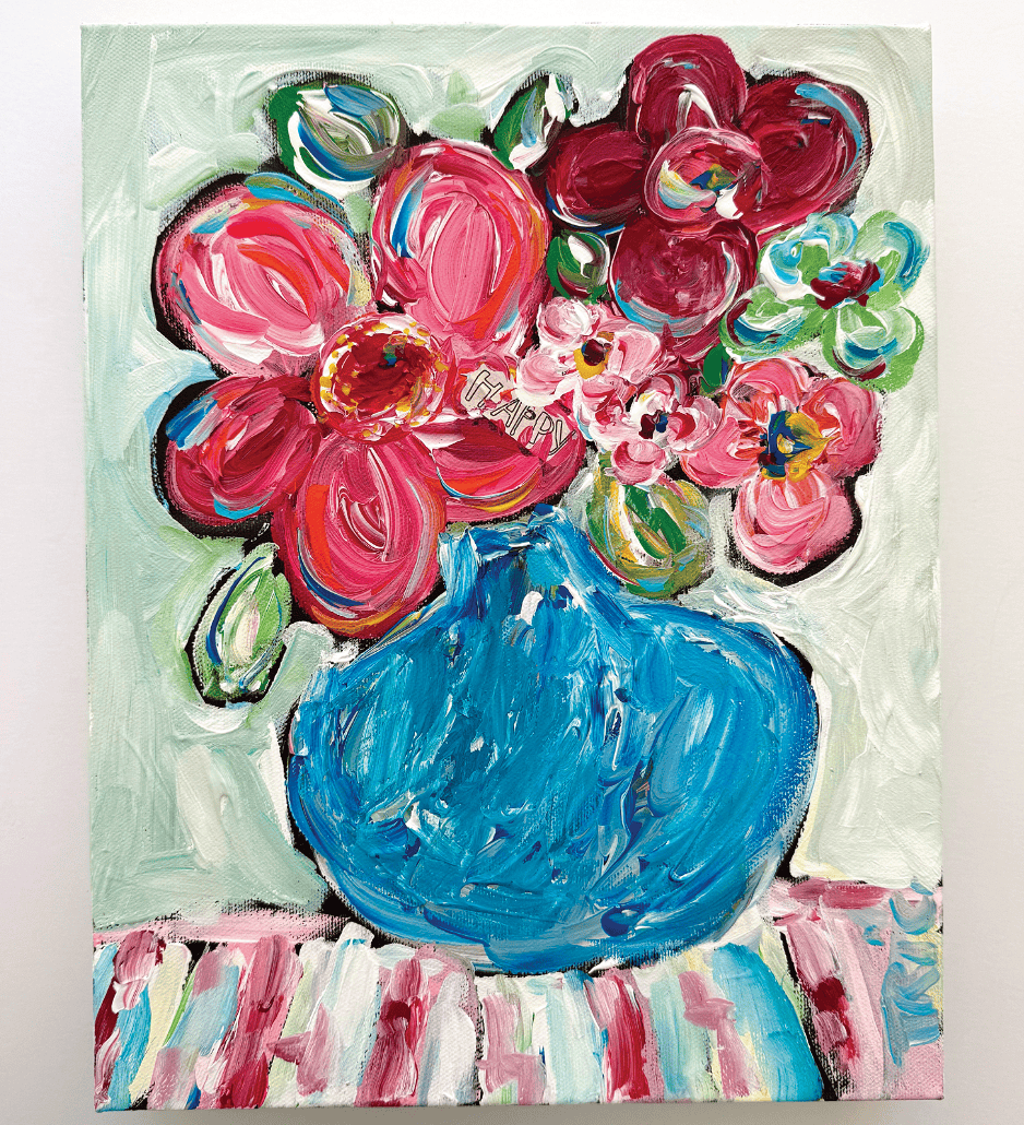 Mixed media (acrylic paint and paper) painting on gallery wrapped canvas.