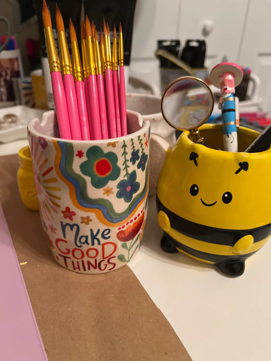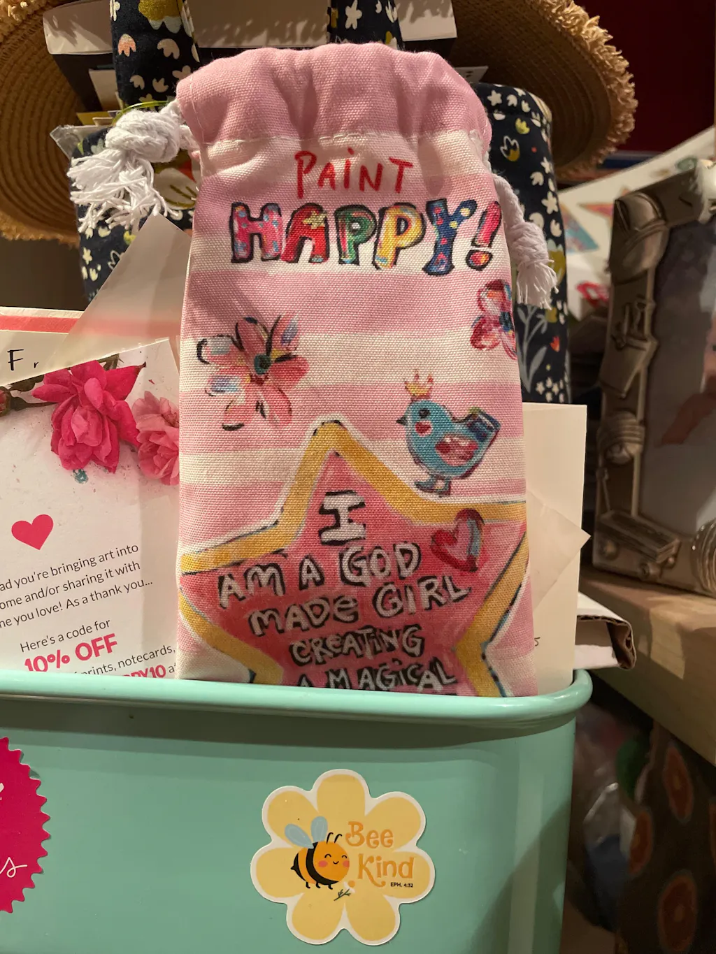 Time to paint happy with these fun pink paint brushes and bag to store them in!